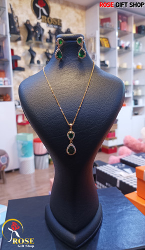 نیم ست گوشواره و گردنبند نگین سبز یاقوتی💚😍۸۰۰٬۰۰۰ تومان